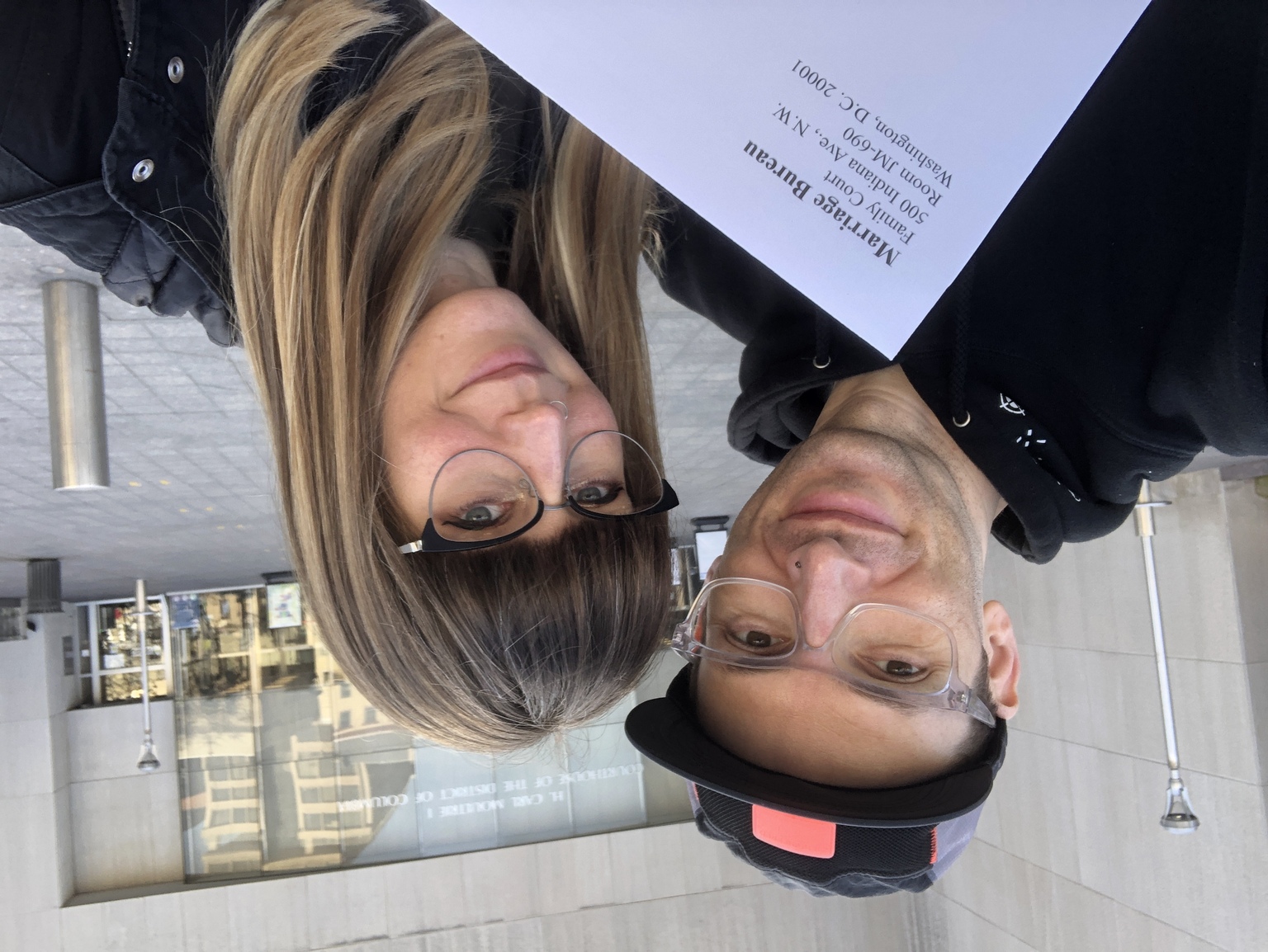 On Dec 14th, 2021, we got married in Washington, DC. We signed our paperwork in the morning and took photos with the Me + You sculpture by artist Suchi Reddy.